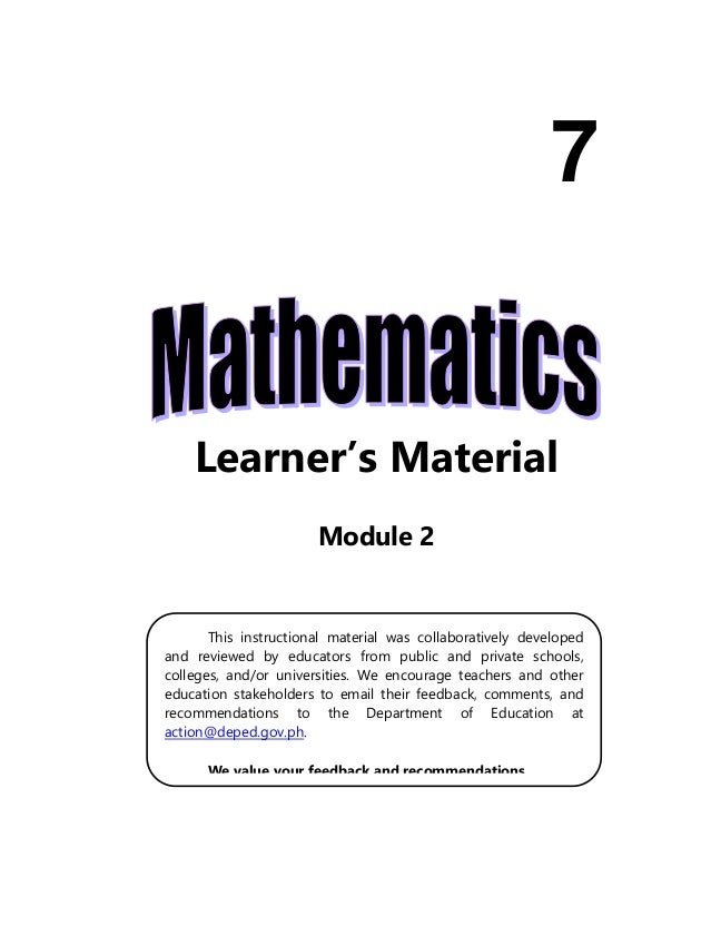 K To 12 Grade 7 Learning Module In Mathematics Q1 Q2 Free Printable Math Worksheets 7th Grade Math Problems 7th Grade Math